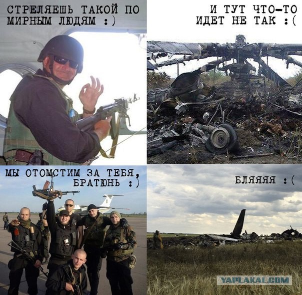 Взрыв-пакеты полетели в посольство. Разбили окна. Появились космонавты. а еще про Порошенку, подарил свой бизнес сыну. а ведь так дышал, так дышал, что будет служить народу ![]() если хохлам после этого дадут газ дешевле 385, путин-йух (не спроста же тот кипешь в день переговоров в киеве)![]() А это про их самолет: