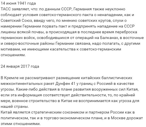Кстати, ты ж либерал, а значит не шибко умный. Ты видимо не знаешь что такое МБР. Буква "М" означает "межконтинентальная". Китай не пехоту свою придвинул к нашим границам, как это сделало НАТО, а МБР назначение которых, должно быть понятно из из названия даже кретину. Китай разумеется одна из самых сильных в военном отношении стран. Однако Китай, в отличии от США, очень редко прибегает к военной силе. Пожалуй за последнее столетие нельзя вспомнить случаев когда Китай участвовал в войнах на уничтожении какого нибудь государства. В то время как США делают это регулярно. Как расценить то, что ты этого не понимаешь? Ты глуп, или ты заинтересованный в чем то лжец? |