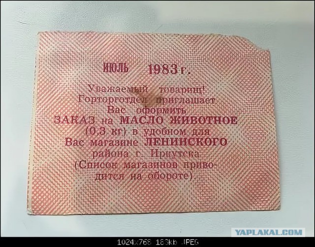 Начав с утверждений про 70, тихонечко сползли на 80-е. Из 7 приведенных примеров 5 заказов и 2 талона. Опять же, 5 за 80-е годы. Я на подобные талоны продукты на продскладе паек получал. Что вовсе не означало отсутствие молока и масла в магазине. А в Утюжке был стол заказов. И можно было заказать как что нибудь этакое, так и просто колбасу. |