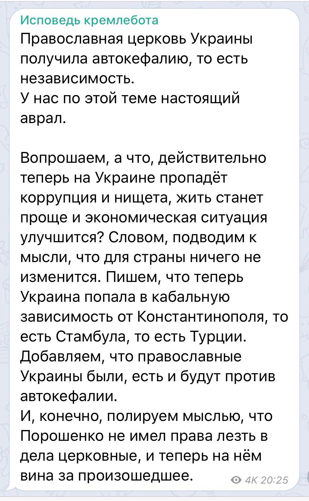 В Киеве раскритиковали положение томоса об автокефалии украинской церкви — согласно документу, все имеющиеся приходы «новой церкви» Украины за пределами страны перейдут под юрисдикцию Константинопольского патриархата. Кроме того, юрисдикция «новой украинской церкви» ограничена территорией Украины. Ранее президент России Владимир Путин завил, что происходящее в церковной жизни на Украине «уму непостижимо».