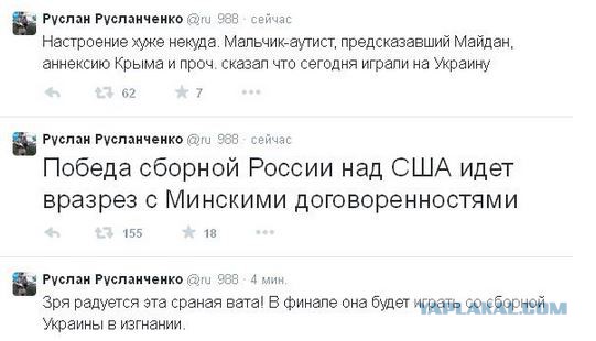 Зайди на ютуб, зазырь любой ролик, где говорится о победе российской сборной на этой олимпиаде. Точнее не любой, а тот, где камментов побольше. Так вот судя по камментам нахлынувших туда хохлов - все равно москали казлы, алкаши и в спорт играть не умеют. Откуда у них только доводы берутся?