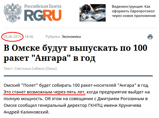 При этом в Роскосмосе отмечают, что о полном прекращении производства «Ангары» в омском филиале Центра речи не идет, и к 2023 году ракета выйдет в серийное производство.